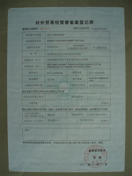 對外貿(mào)易登記表